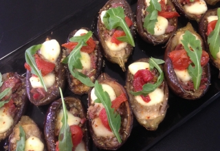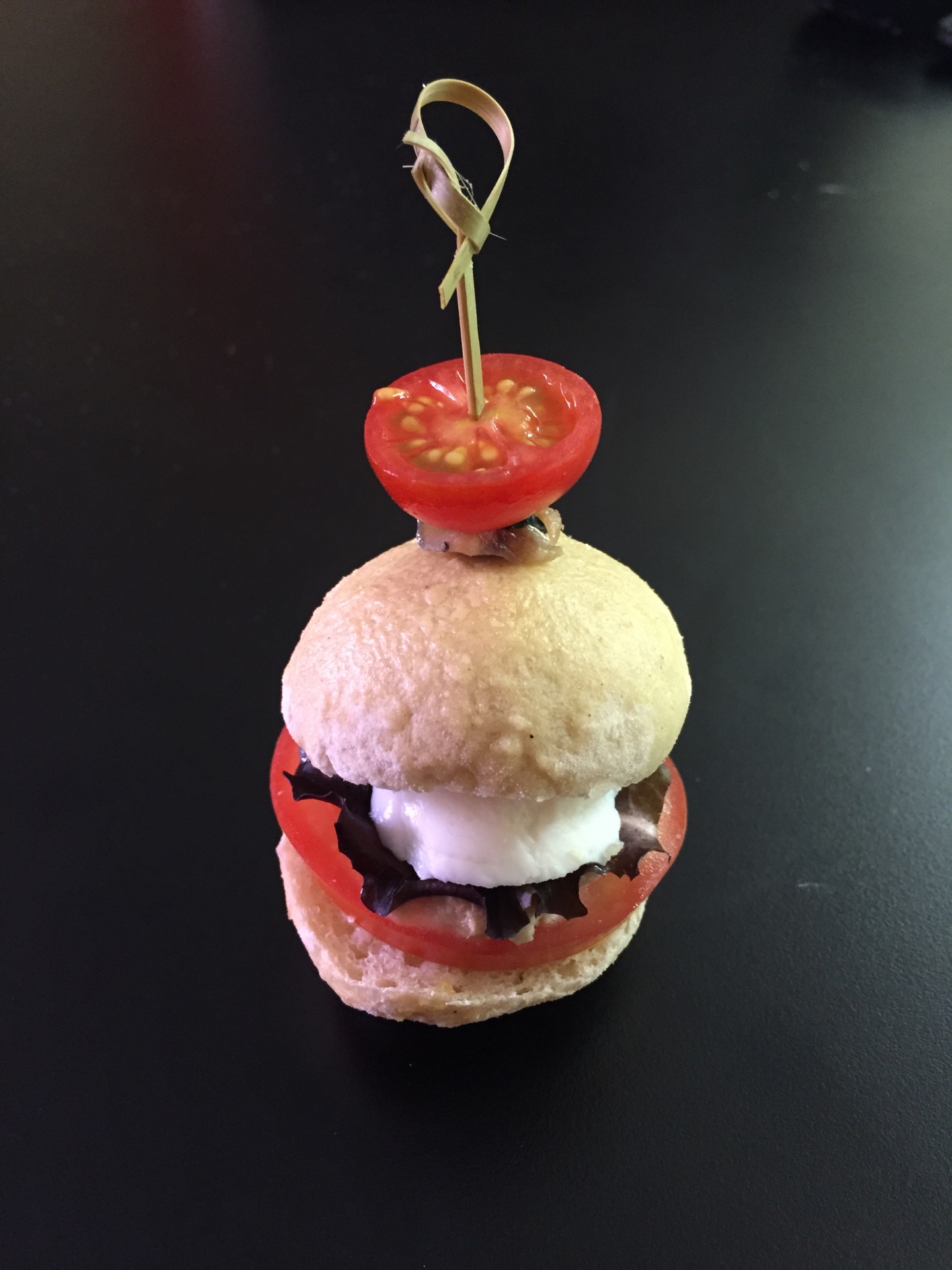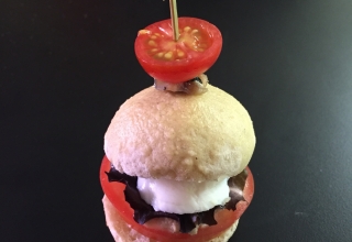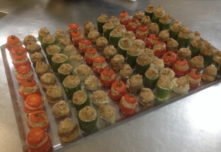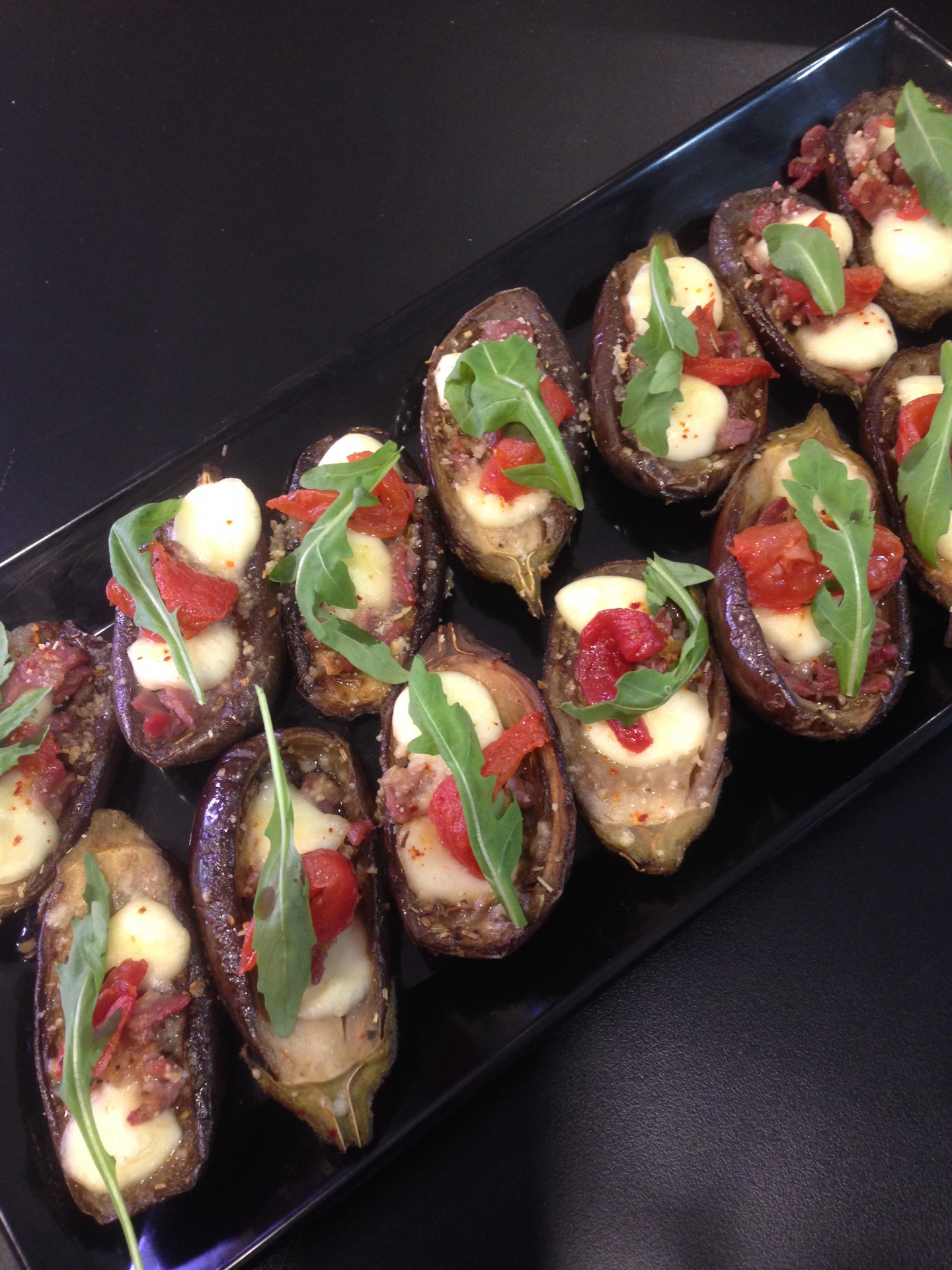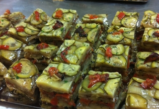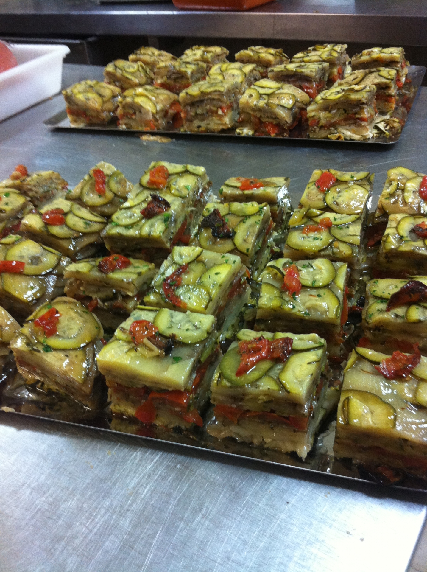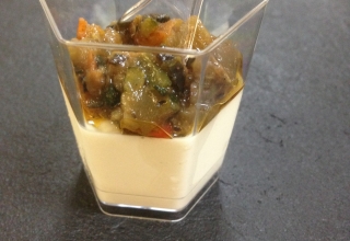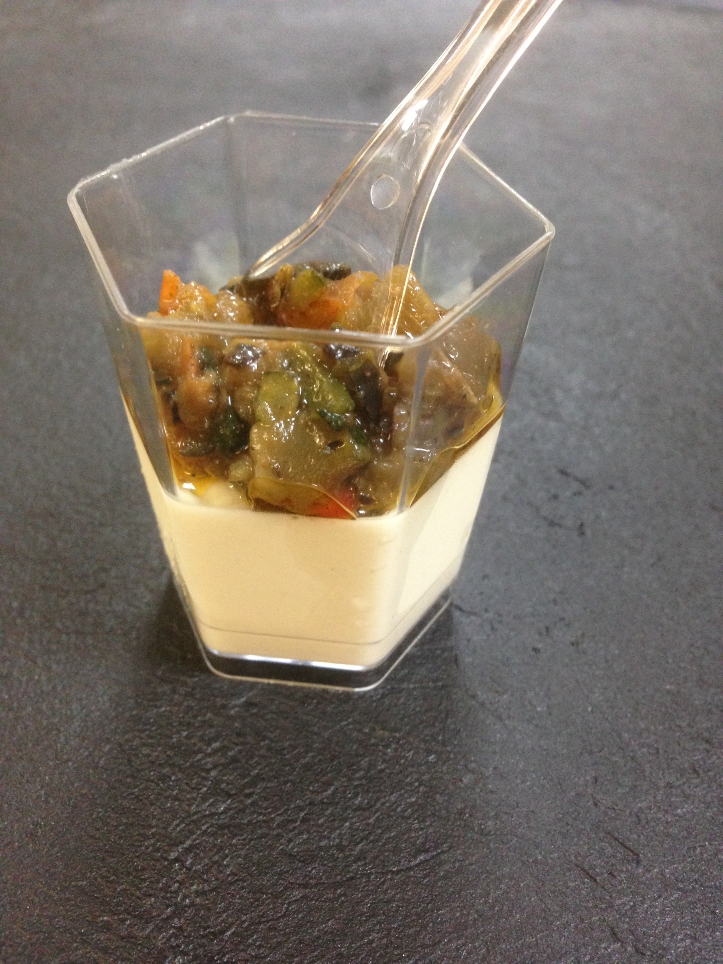 Panna cotta de chèvre, mini ratatouille, pancetta